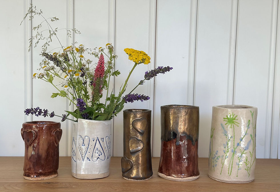 Small Gold Glaze Tumbling Heart Stoneware Vase